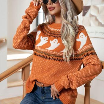 Của phụ nữ Jacquard dệt kim Halloween Áo len giản dị dài tay áo ren áo len biểu tượng tùy chỉnh Kint Áo len